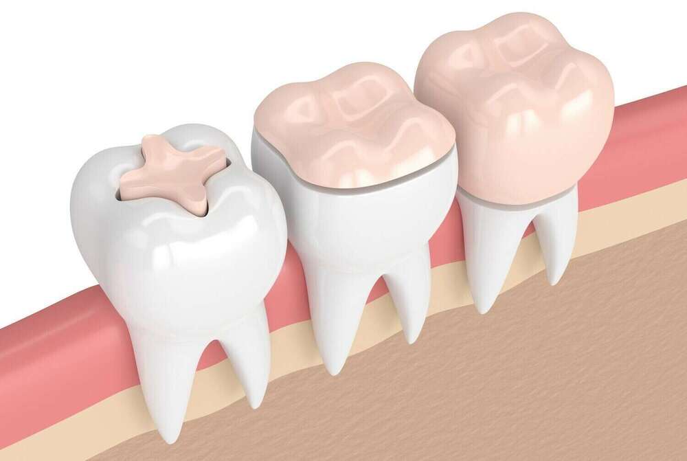 On parle d’inlay lorsque la cavité à combler se trouve à l’intérieur de la dent et d’onlay lorsque la cavité englobe une ou plusieurs parois.