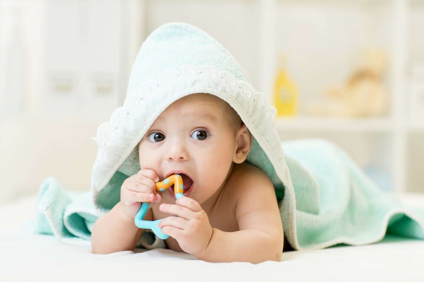 > Pour soulager la douleur, donnez à votre bébé un anneau de dentition à mordiller, ou massez-lui les gencives.